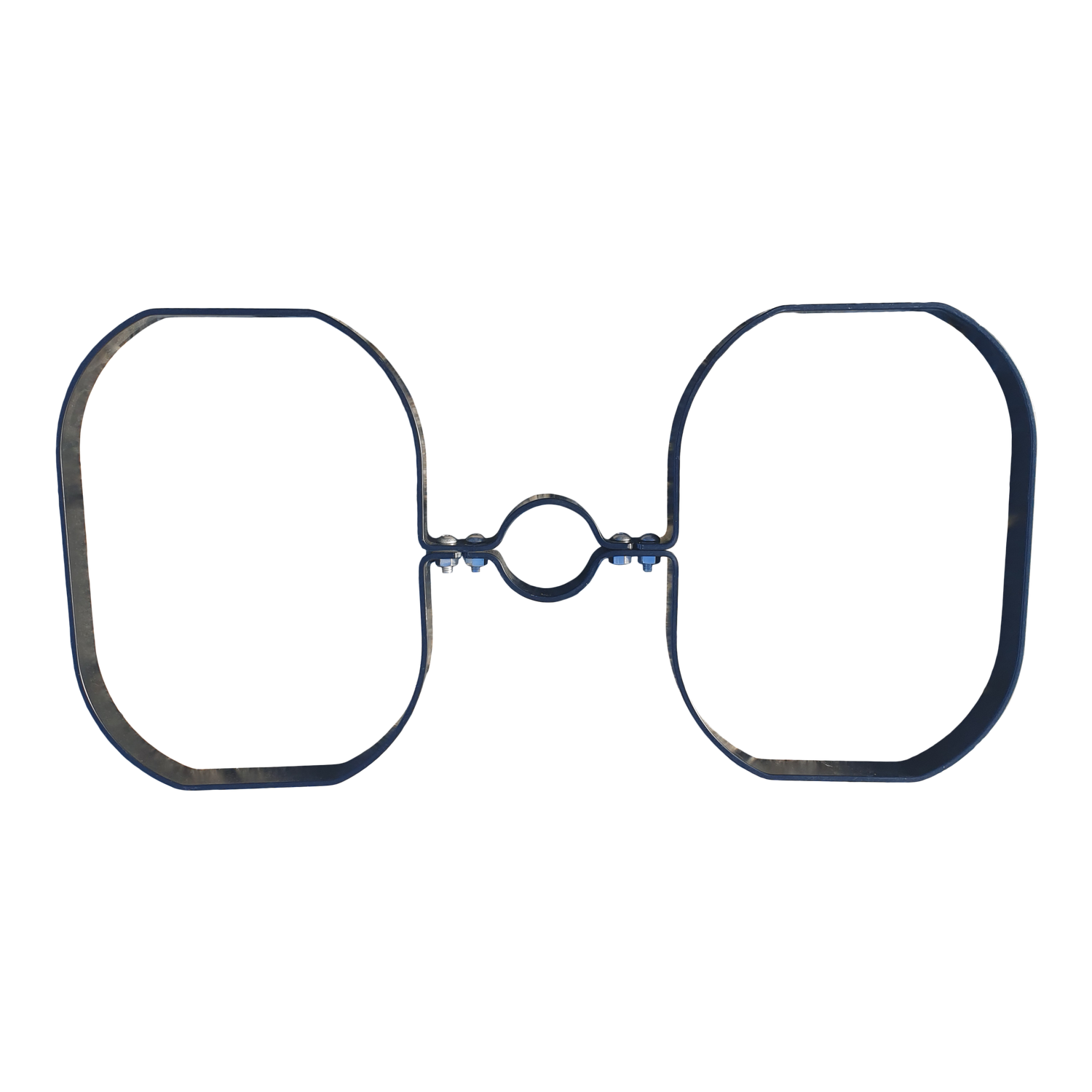 Black bracket for secure and discreet mounting of double litter bin.