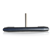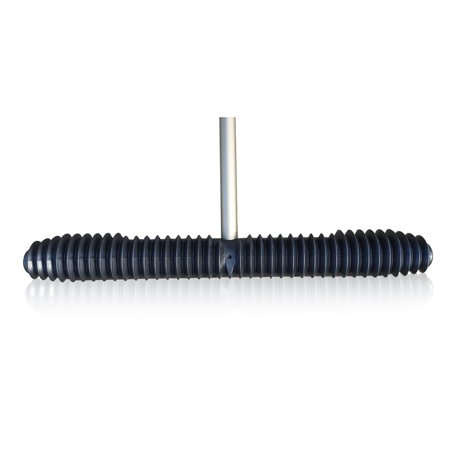 One smooth side for rolling the vertical face of the bunker and a second side with ridges to scrape the bottom of the trap for a consistent lie. The result is a more consistent finish than traditional bunker rakes that leave deep plow marks in the playing surface.