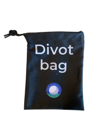 Text: Divot bag With a divot bag you can easily repair the damage to the golf course. It is easy to use divot bags and results in a large saving on maintenance of the course. Drawstring is more practical