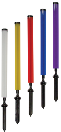 New and improved flexible marking pole. Can be run over with machine or clubcar from any direction, and it will tip up again. Foundation to be sold separately.