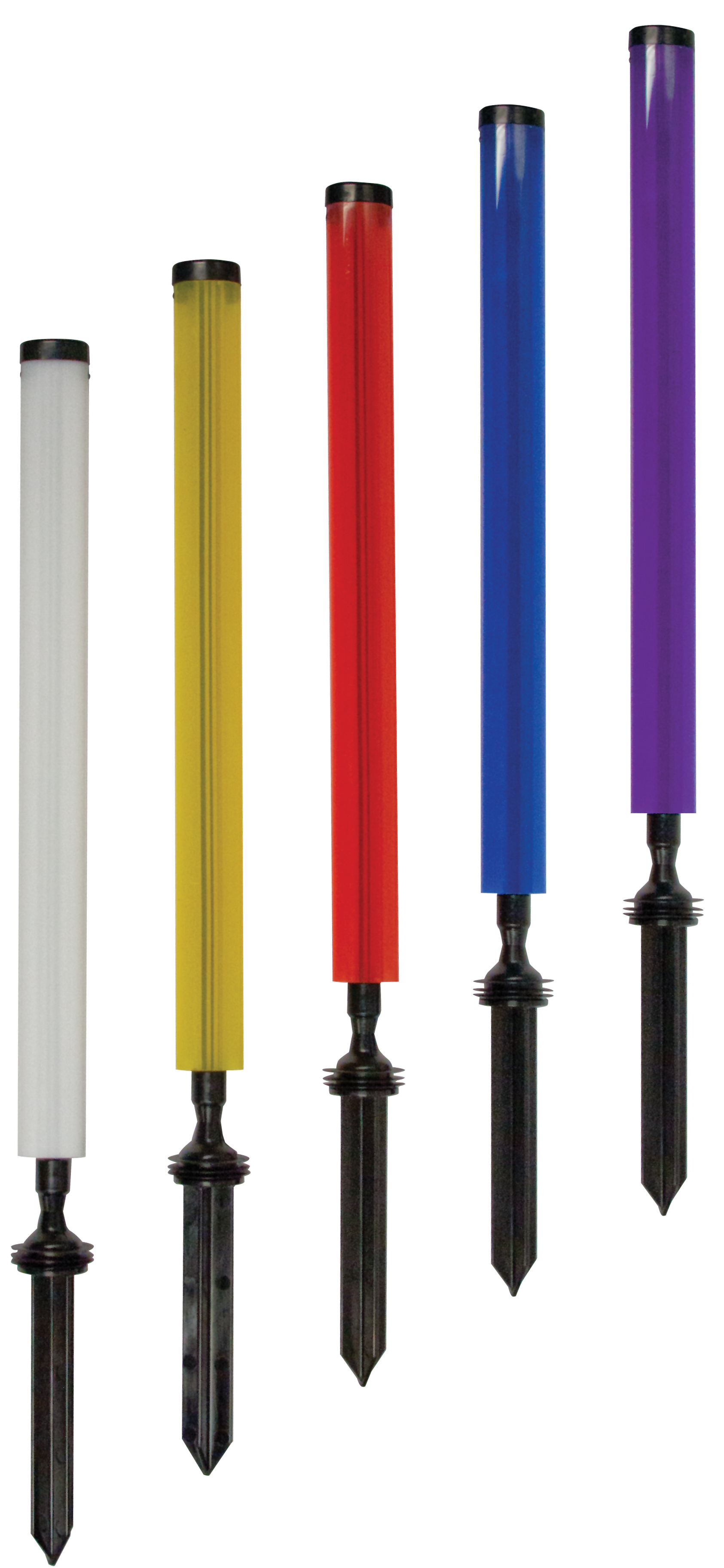 New and improved flexible marking pole. Can be run over with machine or clubcar from any direction, and it will tip up again. Foundation to be sold separately.