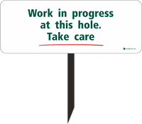 Weather resistant 40x15 cm signs that stand the test of time Mounted on 50 cm long galvanised steel ground spike.