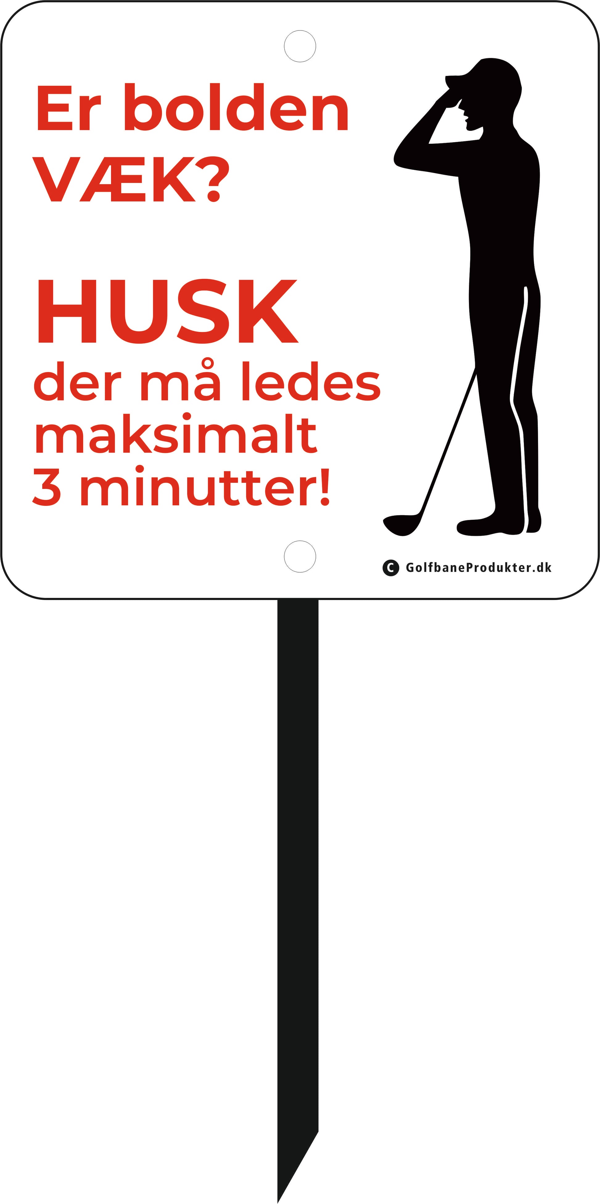 20x20 cm sandwich plate with 50 cm long galvanized steel spear. Help the golfer remember the rule: "REMEMBER that you must search for maximum of 3 minutes"