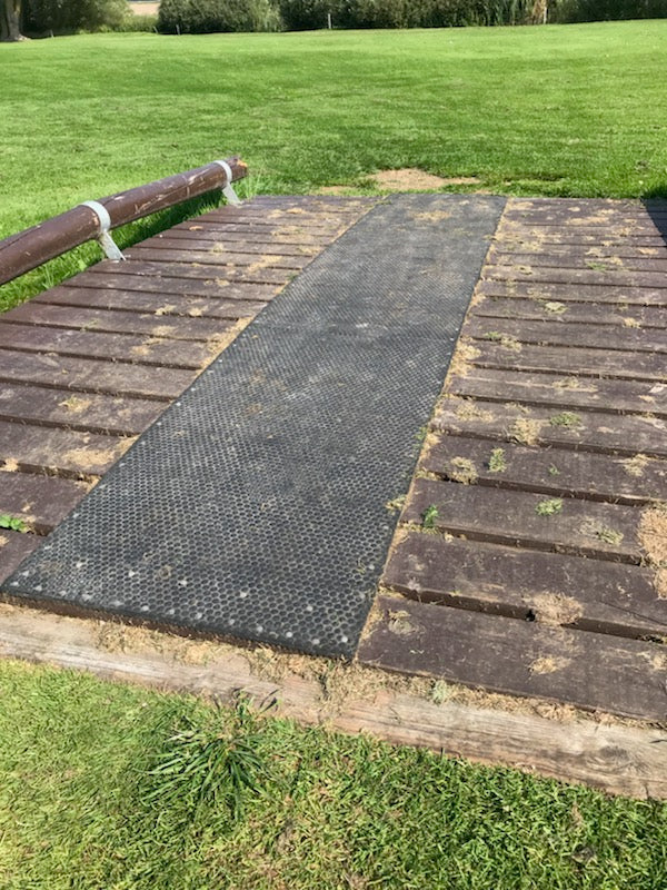 Special rubber mat. 10 mm (0.3") thick with grooved base. Perfect for placing on bridges.