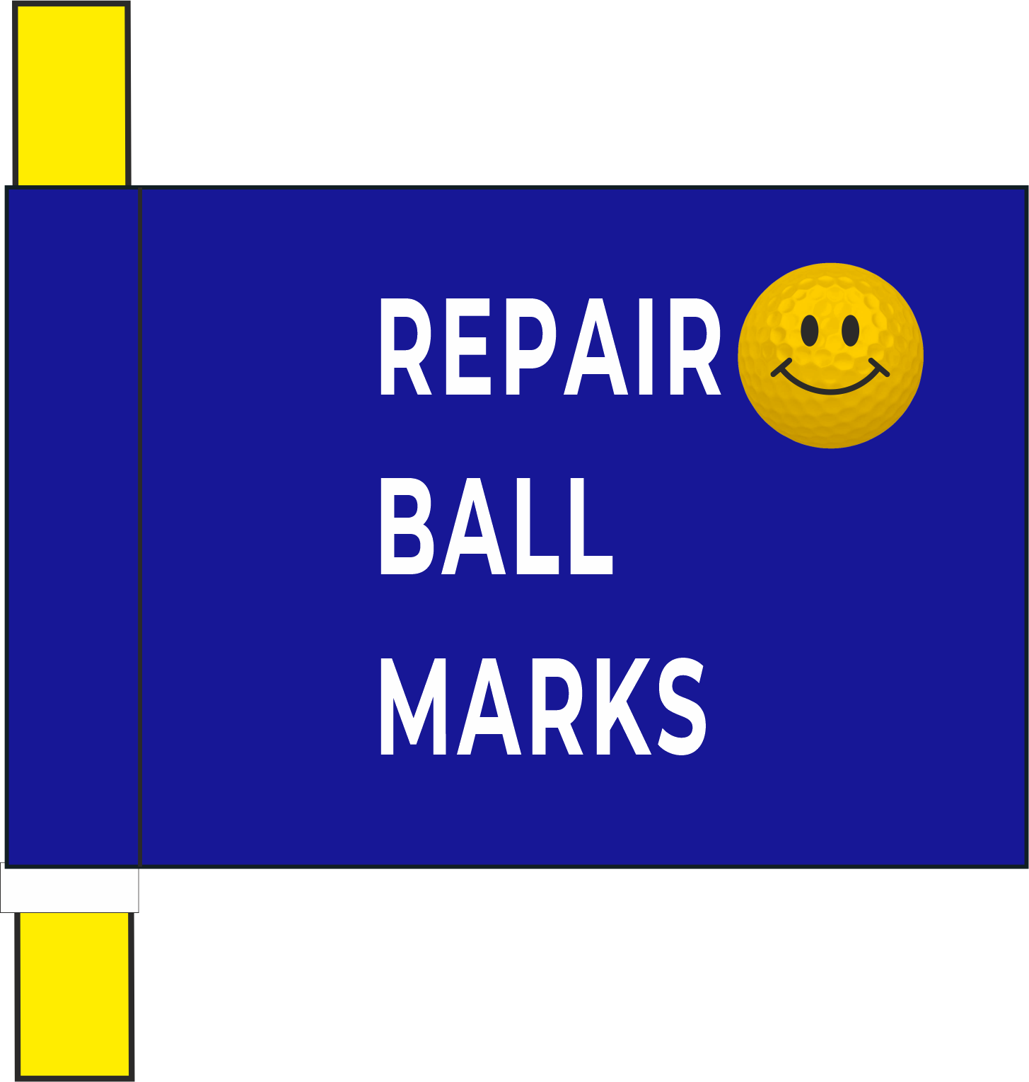Marking Flag blue with text "Repair ball marks" plus smiley