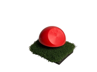 Tee marker half globe RED with oblique circle Ø 65 mm (2.1") for advertising. Impact resistant plastic with alu spike. Model GBP Globe