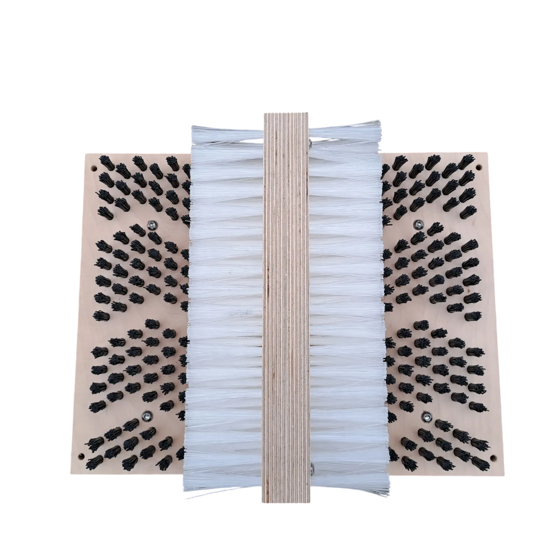 Shoe brush De Luxe, with 2 stiff bottom brushes in Rilsan & 2 soft side brushes in PP Dimensions: 29x38 cm