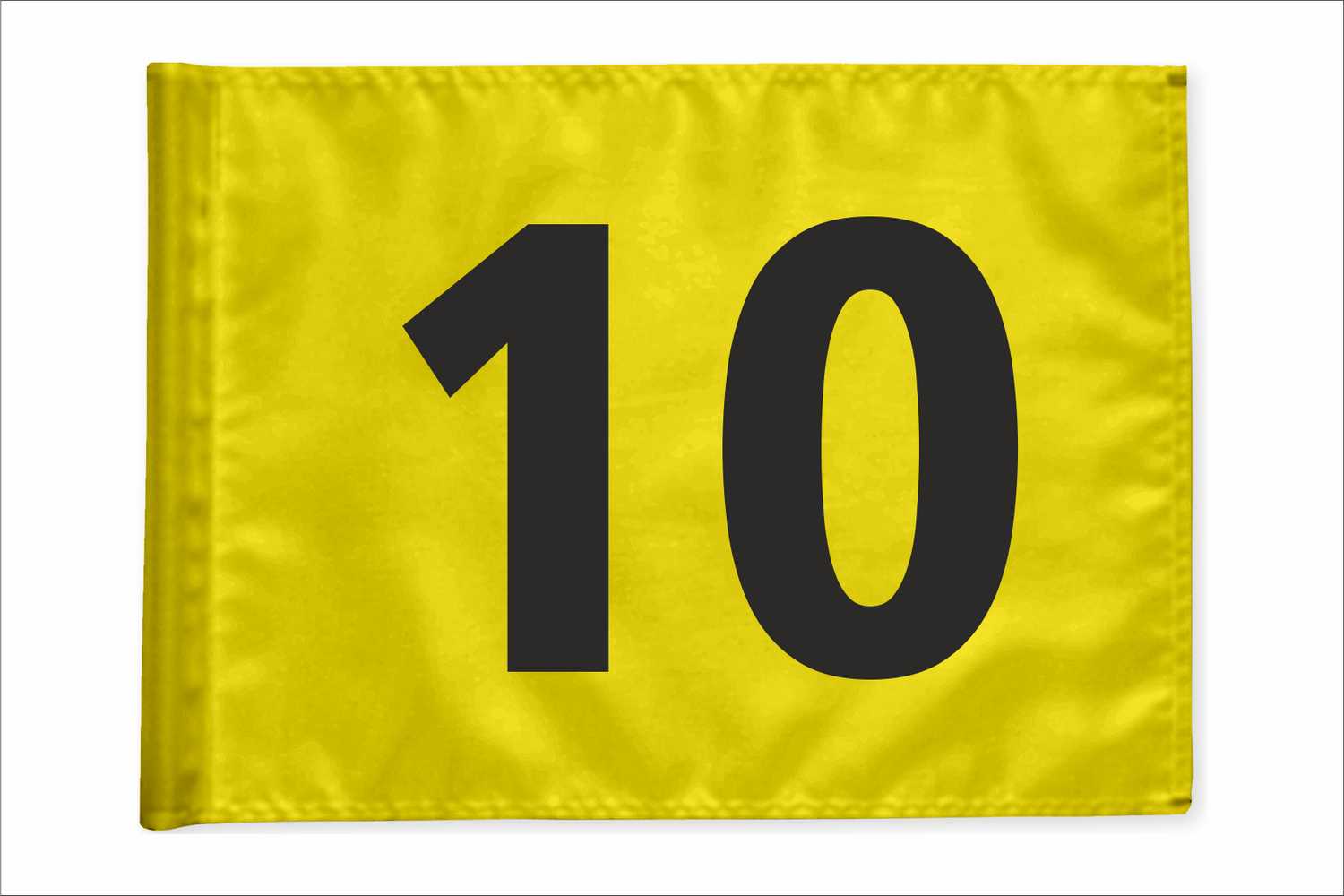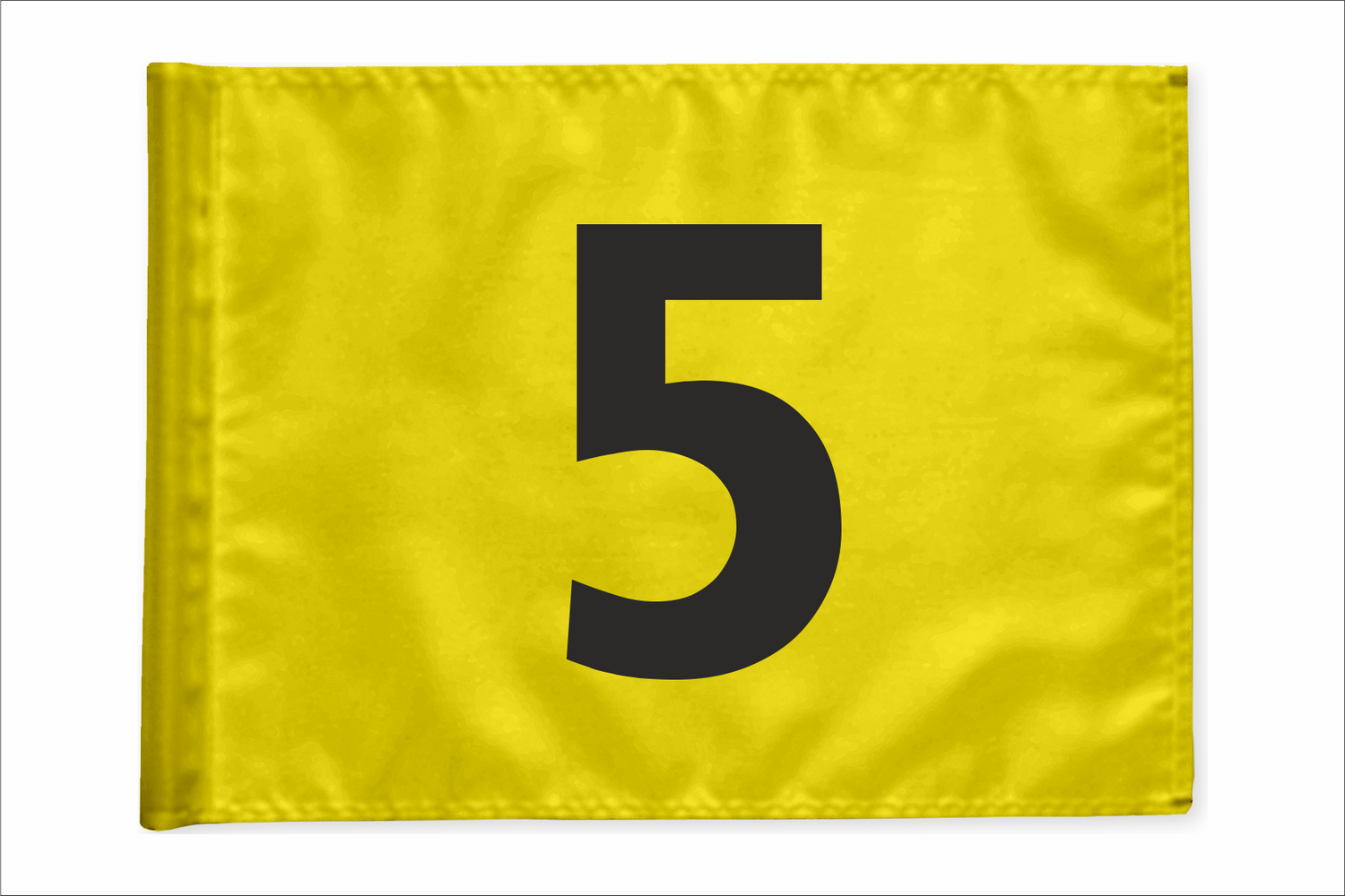 Single golf flag, yellow with optional hole number, 200 gram fabric