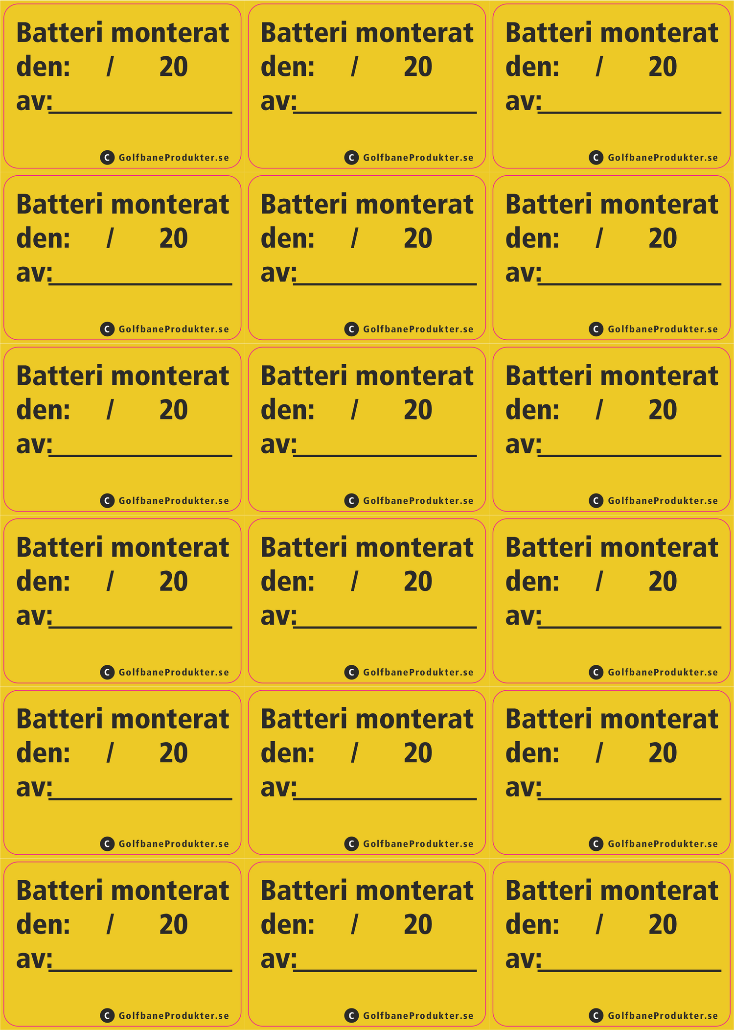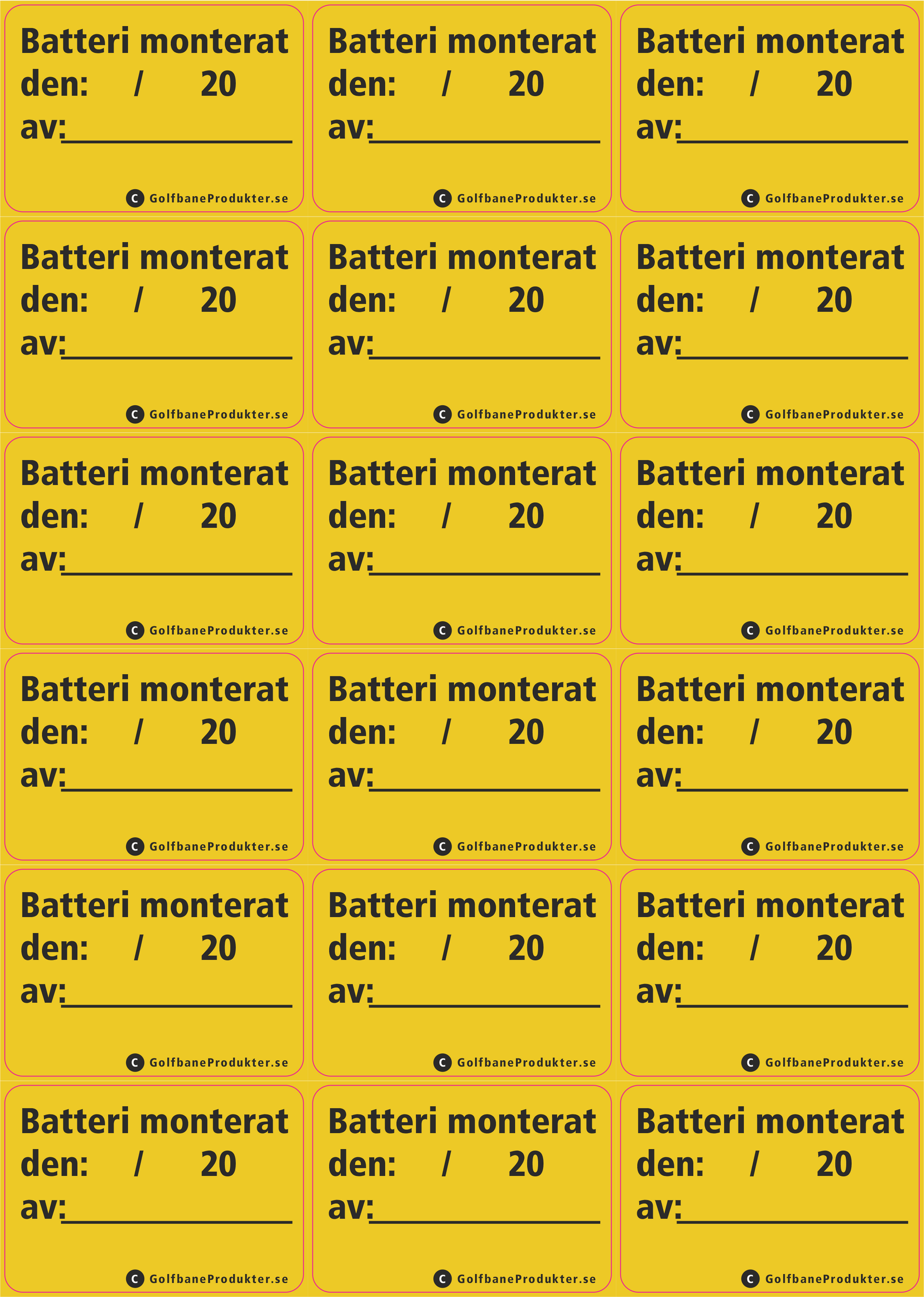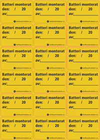 Tekst: 'Batteri monteret den:___ /___ 20__ af:____________'