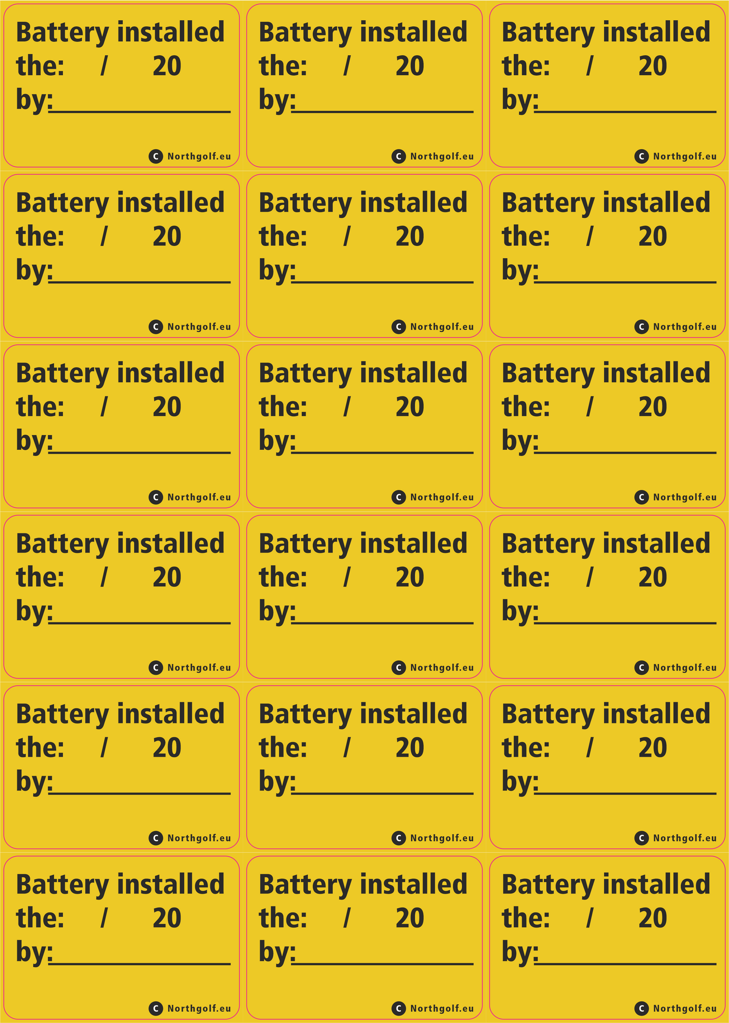 Tekst: 'Batteri monteret den:___ /___ 20__ af:____________'