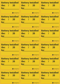 Sticker "Battery mounted…" Digital print 65x45mm (2.5"x1.7") for writing on, 18 pcs. per sheet