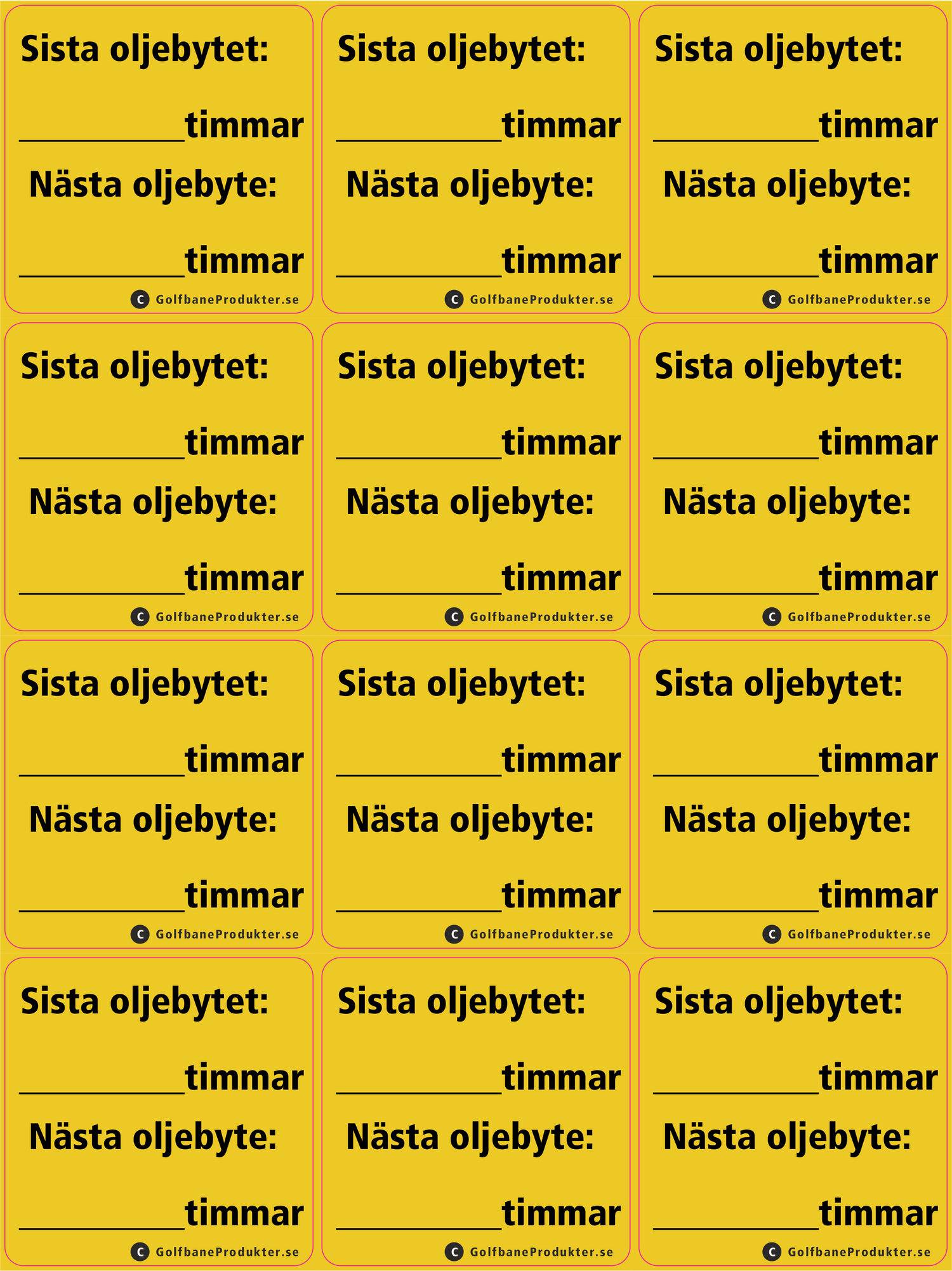 Tekst: 'Sidste olieskift: ________timer. Næste olieskift:________timer.'