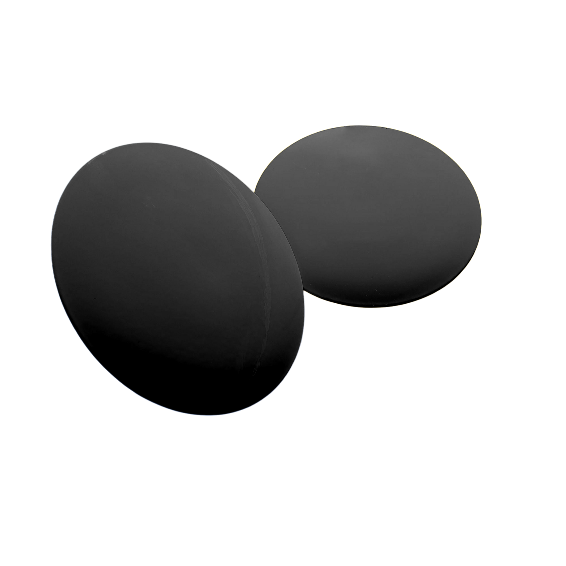 Flad, sort tee‑markering fremstillet af rustfrit stål.