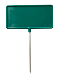 Tee marker, square green. Impact-resistant plastic plate with short aluminium spike. Internal dimensions: 9 x 4.3" (23 x11cm).