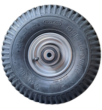 Replacement wheel complete with tyre and tube, flanged bush inserts (top hat) and axle nut and bolt