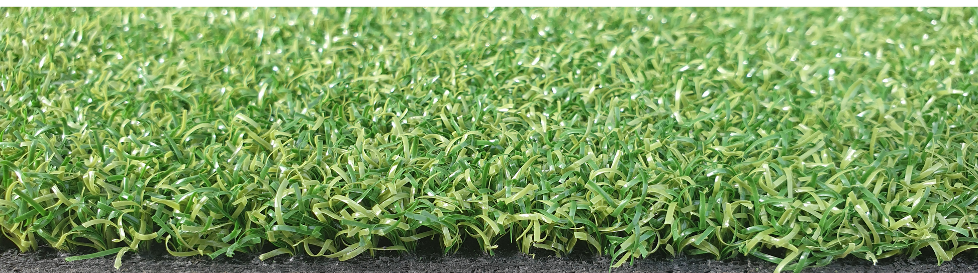 12mm thick, with 10mm "grass" and 2 mm latex backing